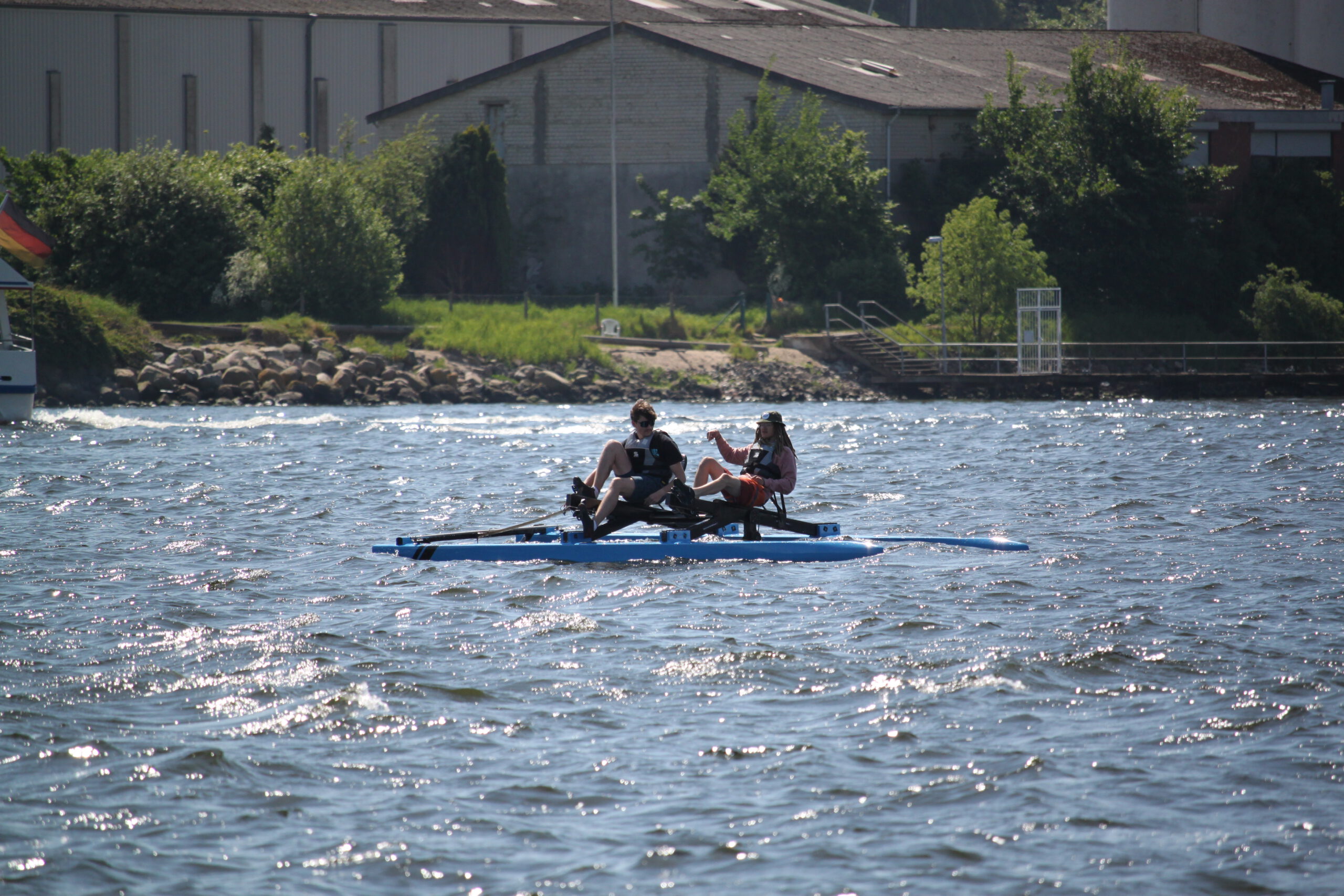 Förderacer 1.0 ist das ältere unserer beiden Tretboote und wurde ursprünglich als Einzelprojekt gebaut. Es verfügt über ein robustes Fahrgestell und wird von zwei Fahrern angetrieben, die ihre Kraft über ein gemeinsames Pedalsystem auf das Wasser übertragen. Das Boot ist 6 Meter lang, 2 Meter breit und hat einen Tiefgang von 0,9 Metern. Durch seine stabile Bauweise und eine hervorragende Kursstabilität eignet sich Förderacer 1.0 besonders gut für lange Strecken und gleichmäßige Geschwindigkeiten. Bei vergangenen Wettkämpfen konnte das Boot mit seiner Zuverlässigkeit und Effizienz überzeugen und zählt bis heute zu einem wichtigen Bestandteil unseres Teams.