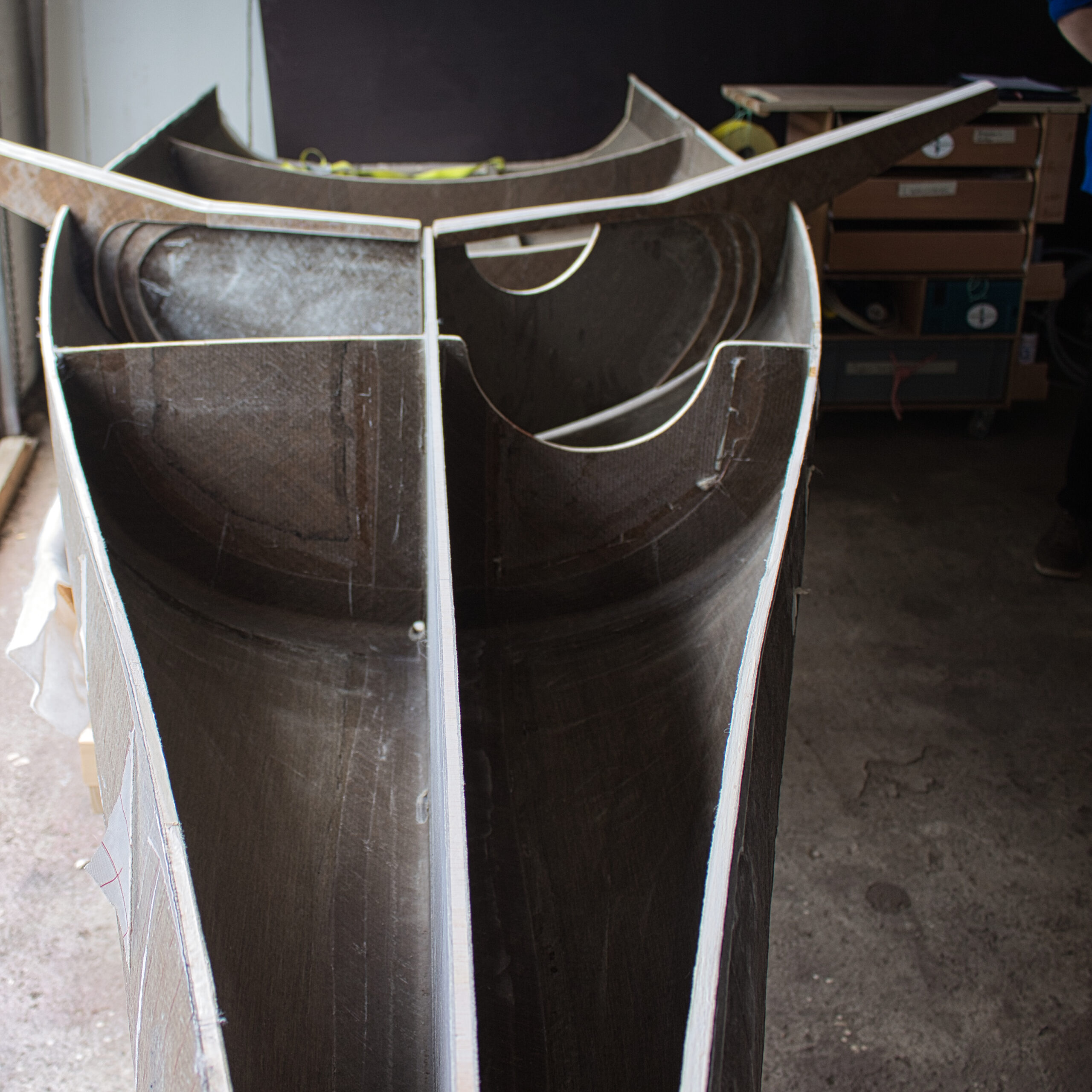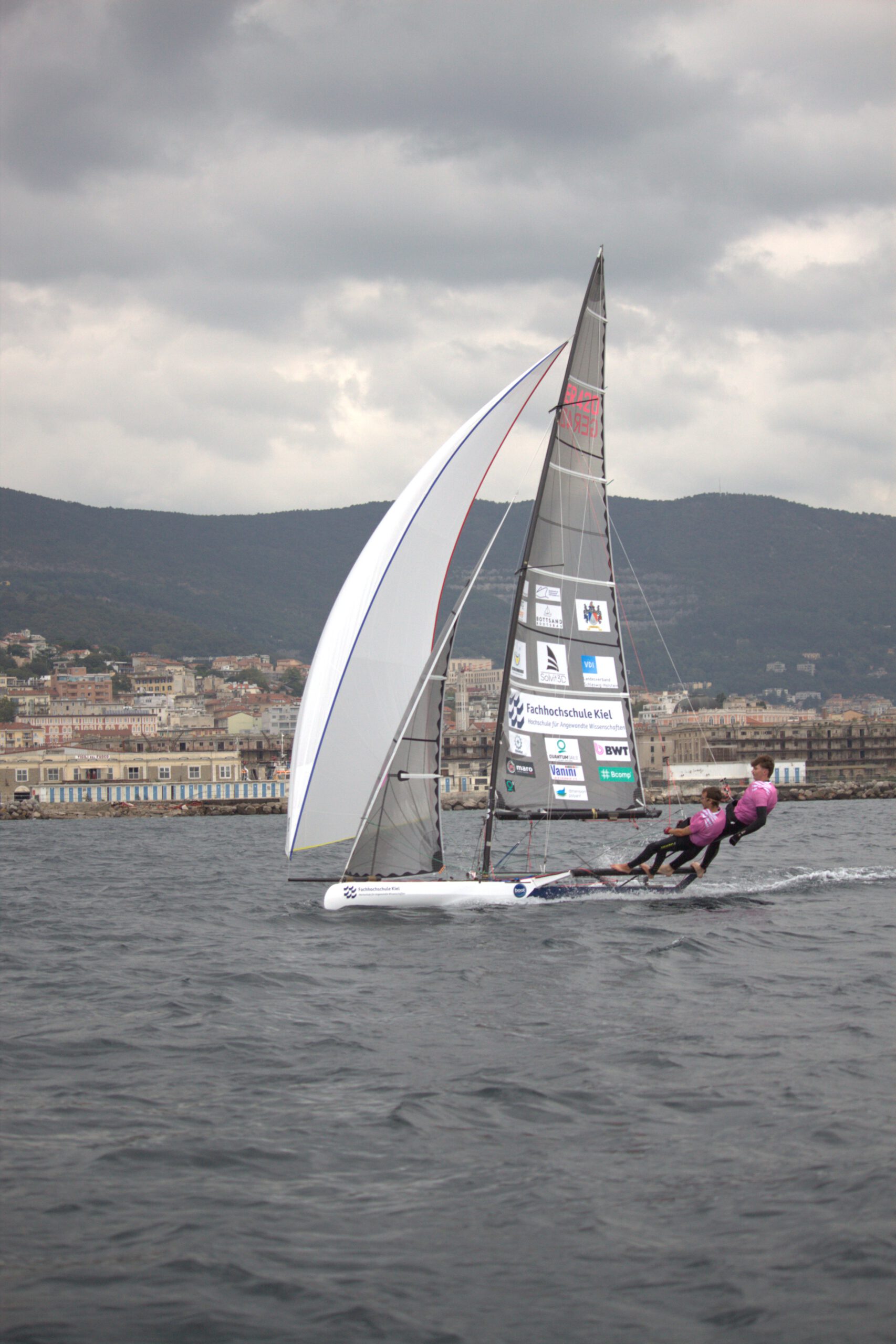 Die Layliner ist unser Skiff aus der Vela Klasse, mit dem wir am Velacup-1001 teilgenommen haben. Das Skiff wurde speziell nach den vorgeschriebenen Maßen des Wettbewerbs konstruiert und erfüllt diese exakt: Sie ist 4,2m lang (starre länge Ü.a.) und 2,1m breit (inkl. Racks) und verfügt über eine Segelfläche von 33m2. Diese Fläche setzt sich aus einem Großsegel, einem Gennaker und einer Fock zusammen. Ein besonderes Merkmal des Projekt-Velas ist die nachhaltige Bauweise. 75% des aufgewandten Materials sind biologischen Ursprungs, CO2 neutral oder recycelt.